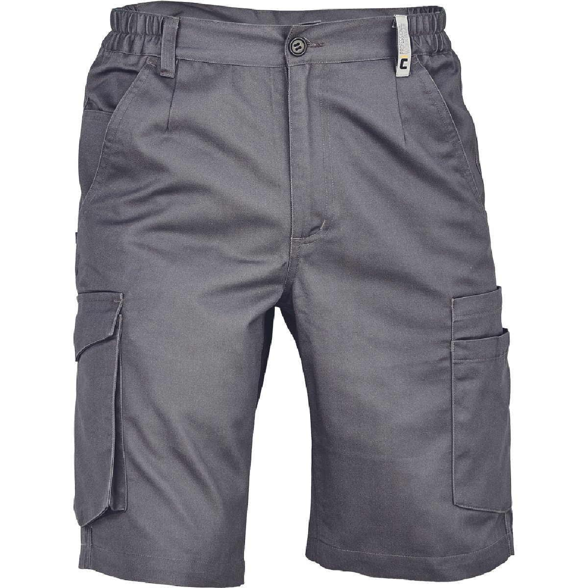 Η ανδρική βερμούδα εργασίας Gijon σε γκρι χρώμα προσφέρει λειτουργικότητα και άνεση. Διαθέτει ελαστική μέση και έξι πολυλειτουργικές τσέπες για να αποθηκεύετε εργαλεία ή άλλα αντικείμενα κατά τη διάρκεια της εργασίας σας.