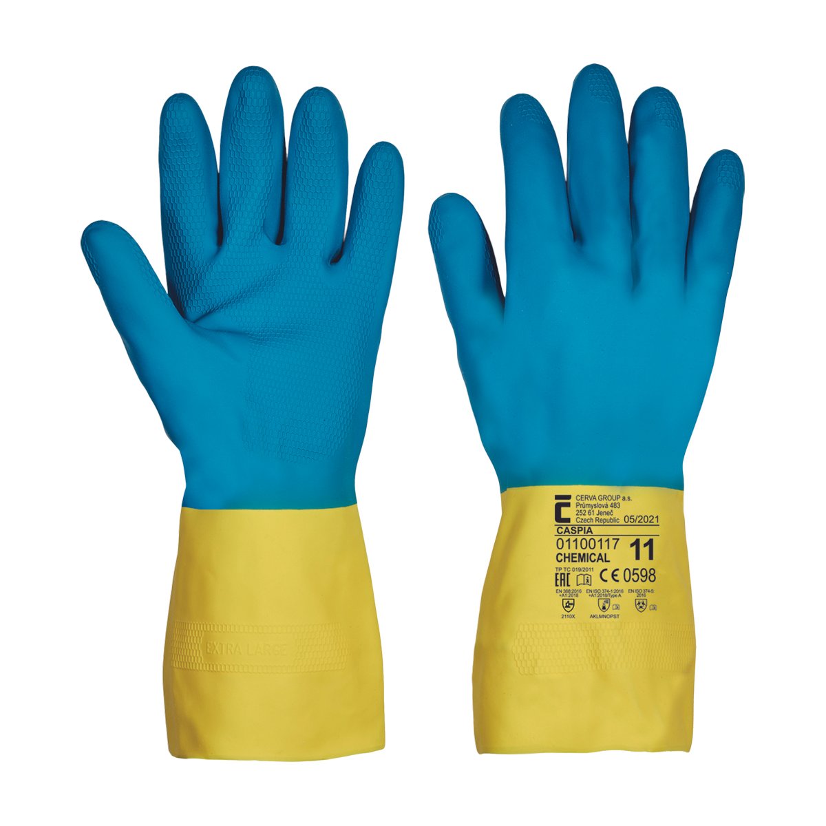 Γάντια χημικών λάτεξ-νεοπρεν Νο.9/L δίχρωμο κίτρινο-μπλε Caspia