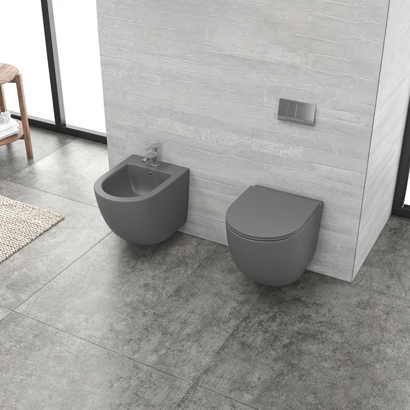 Λεκάνη αναρτώμενη rimless με κάλυμμα γκρι ματ MILOS LT 046E KARAG