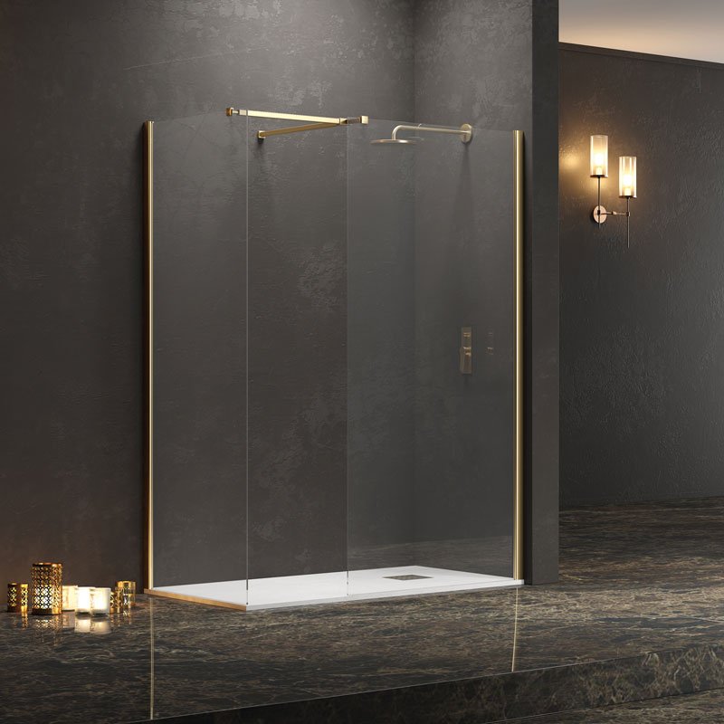 Σταθερά διαχωριστικά ντουζιέρας με διάφανο κρύσταλλο WALKIN 2 Gold KARAG 80x200cm