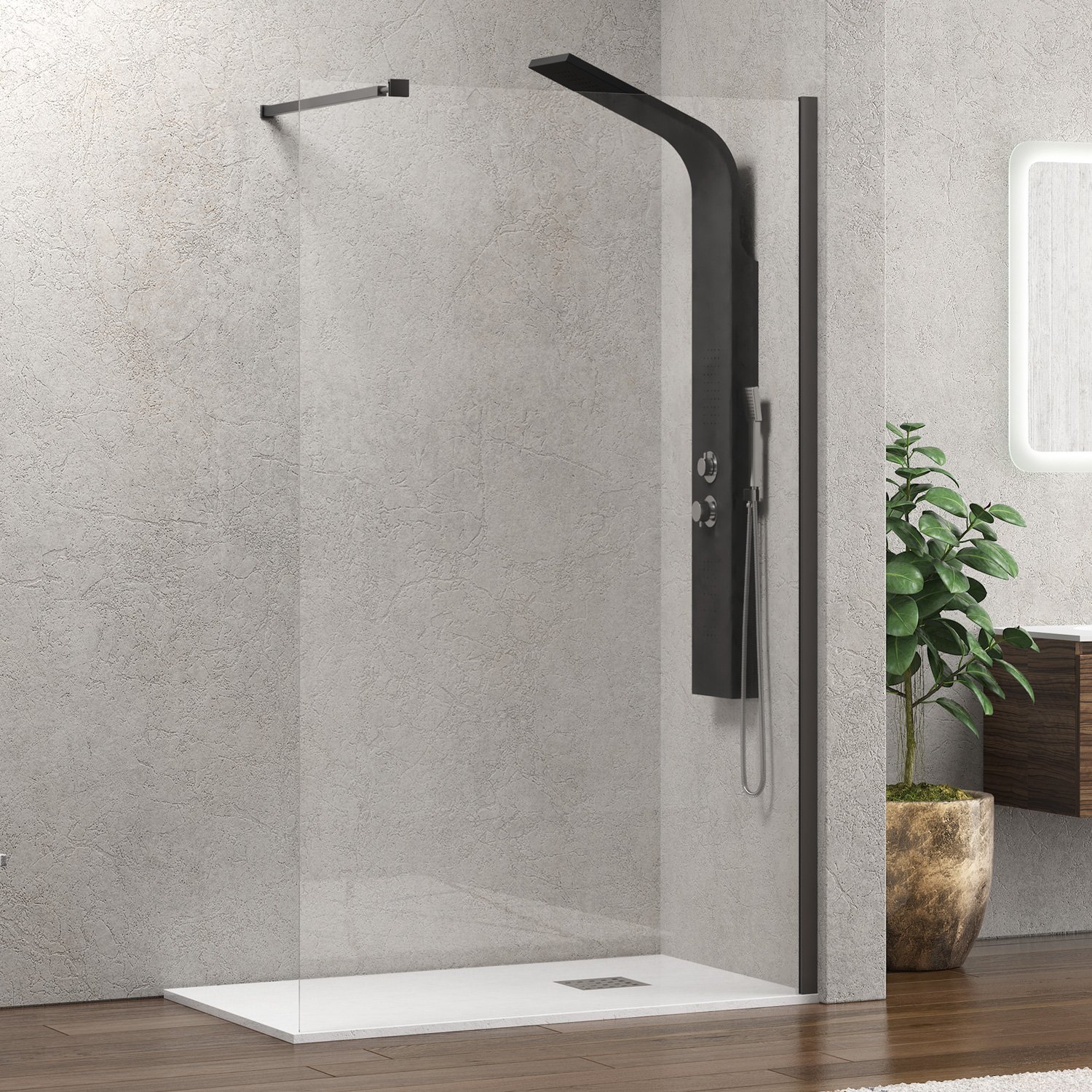 Σταθερό διαχωριστικό ντουζιέρας με διάφανο κρύσταλλο WALKIN 1 Gun Metal KARAG