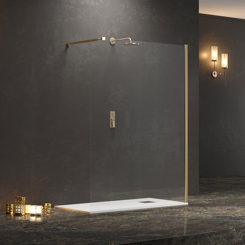 Σταθερό διαχωριστικό ντουζιέρας με διάφανο κρύσταλλο WALKIN 1 Gold KARAG 100x200cm