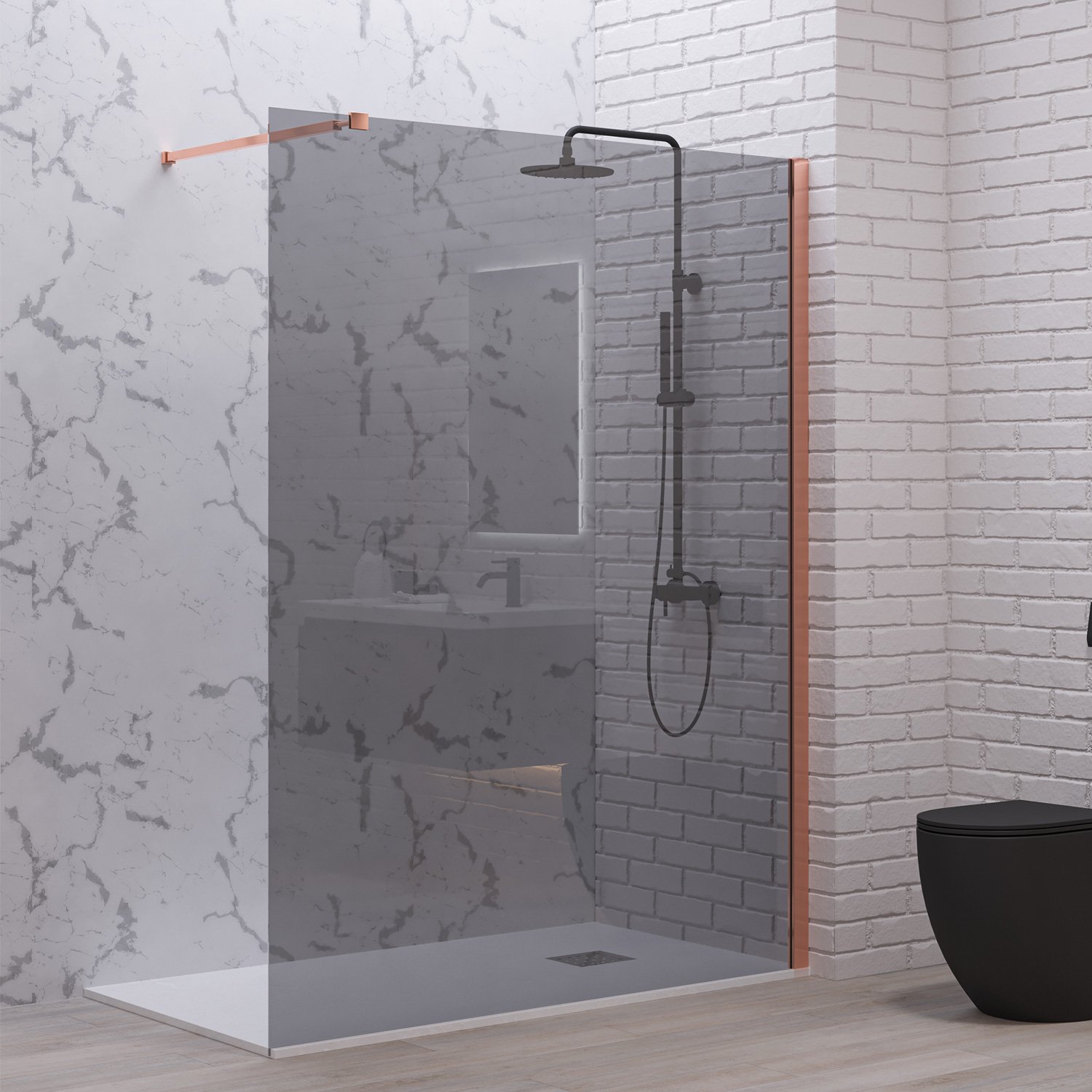 Σταθερό διαχωριστικό ντουζιέρας με fume κρύσταλλο WALKIN 1 Rose Gold KARAG