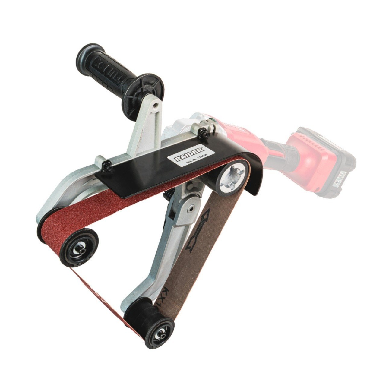 Ο ταινιολειαντήρας RAIDER για γωνιακό τροχό 760x40mm αποτελεί ένα εξειδικευμένο εξάρτημα που μετατρέπει έναν κοινό γωνιακό τροχό Ø125 mm σε επαγγελματικό εργαλείο λείανσης με ταινία. Είναι ιδανικός για επεξεργασία μεταλλικών σωλήνων και κατασκευών, προσφέροντας υψηλή ακρίβεια και ομοιομορφία στο τρίψιμο. Η κατασκευή του επιτρέπει ευρεία κάλυψη της επιφάνειας, εξασφαλίζοντας ομοιόμορφο αποτέλεσμα σε μεγαλύτερο τμήμα της περιφέρειας του σωλήνα. Η δυνατότητα ρύθμισης γωνίας και πίεσης προσφέρει πλήρη έλεγχο κατά τη χρήση, καθιστώντας το ιδανικό για απαιτητικές εργασίες όπως καθαρισμός συγκολλήσεων, στίλβωση και προετοιμασία επιφανειών. Είναι κατάλληλος για ανοξείδωτο χάλυβα, σιδηρούχα μέταλλα, κιγκλιδώματα, χειρολισθήρες και μεταλλικές κατασκευές, ενώ η εύκολη σύνδεση στον γωνιακό τροχό επιτρέπει άμεση χρήση χωρίς πρόσθετα εργαλεία.
