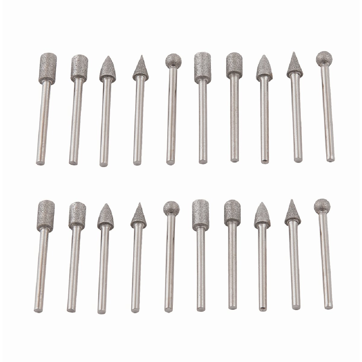 Ποικιλία Σχημάτων: Το σετ περιλαμβάνει φρέζες με διάφορα σχήματα και μεγέθη.
