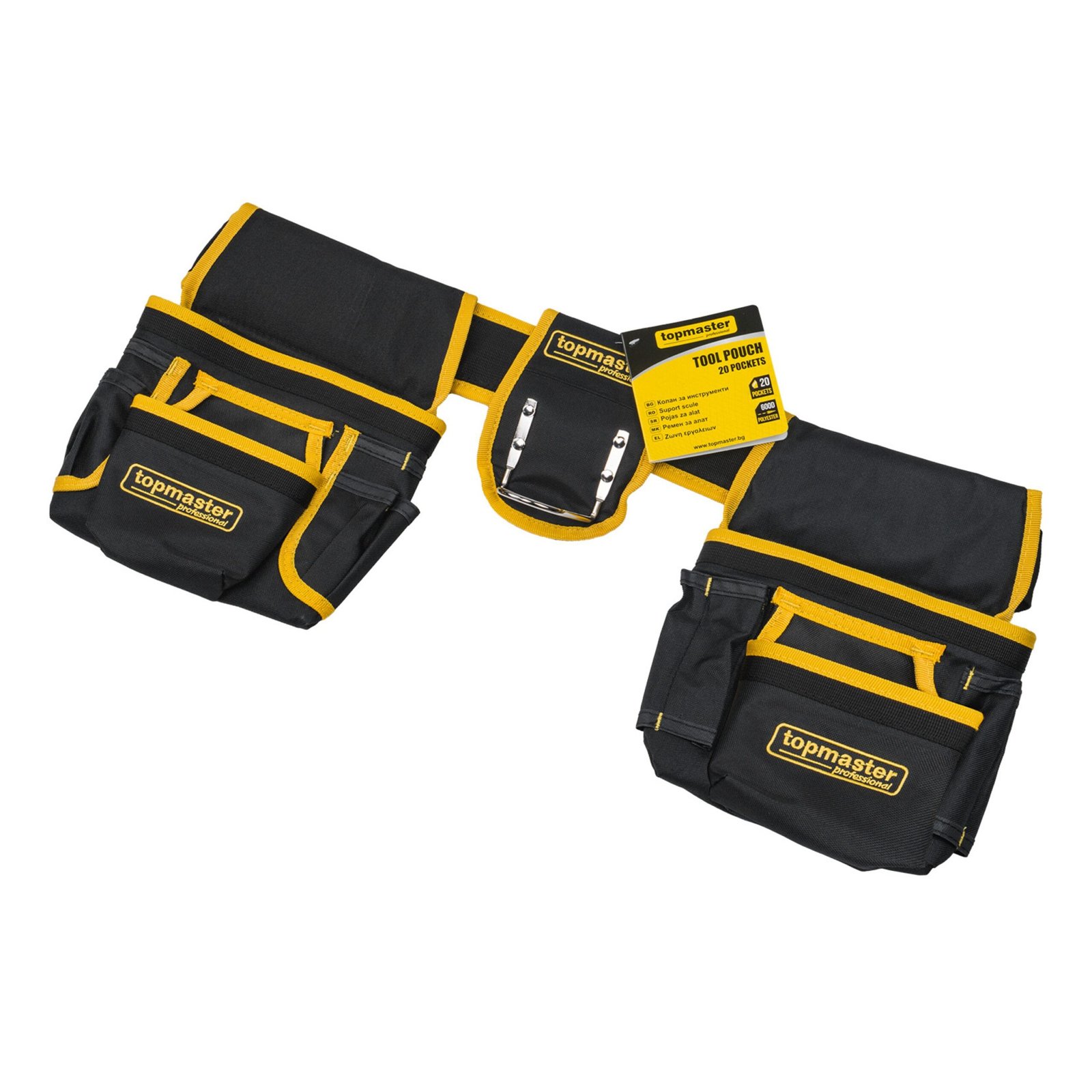 Η ζώνη εργαλείων TOP MASTER με 20 θέσεις είναι η ιδανική επιλογή για επαγγελματίες και ερασιτέχνες που επιζητούν οργάνωση, εργονομία και άνεση κατά την εργασία. Κατασκευασμένη από ανθεκτικό πολυεστέρα, προσφέρει μακροχρόνια χρήση ακόμη και στις πιο απαιτητικές συνθήκες. Το ελαφρύ αλλά στιβαρό της υλικό την καθιστά ιδανική για καθημερινή χρήση χωρίς να επιβαρύνει τον χρήστη, ενώ οι πολλές τσέπες διαφόρων μεγεθών καλύπτουν κάθε ανάγκη αποθήκευσης.